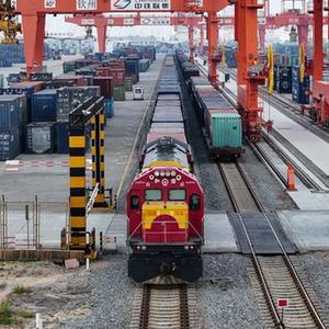 在钦州集装箱中心站,铁海联运班列整装待发(11月24日摄,无人机照片)。(新华社记者张爱林摄)