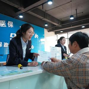 11月1日,在重庆市北碚区歇马街道医保政务服务分中心,工作人员在给居民讲解医保政策。新华社发(秦廷富 摄)