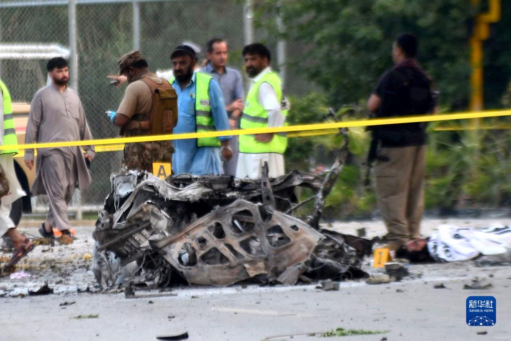 7月18日,安全人员在巴基斯坦白沙瓦市调查爆炸事件现场。新华社发