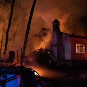 这是7月18日在希腊雅典郊外曼兹拉附近拍摄的野火。