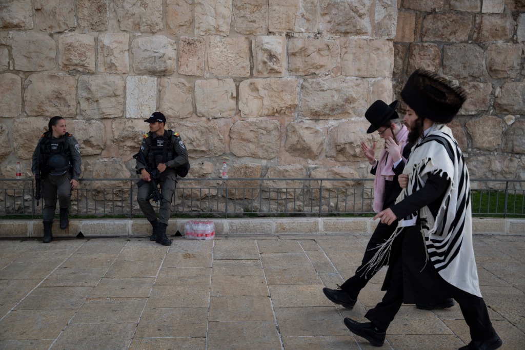 4月9日,警察在耶路撒冷老城警戒执勤。新华社记者陈君清摄