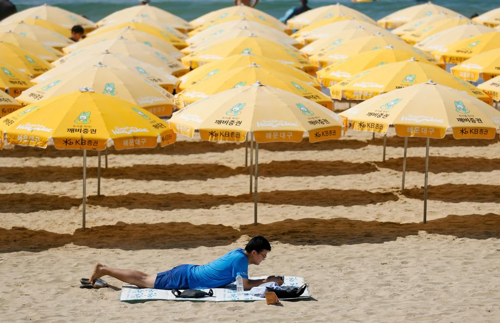 8月3日,市民在韩国釜山的海滩休闲。新华社记者 王益亮 摄