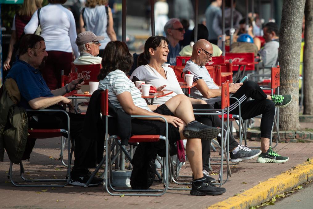 8月6日,人们在阿根廷首都布宜诺斯艾利斯的一处露天餐馆用餐。新华社发(马丁·萨巴拉摄)