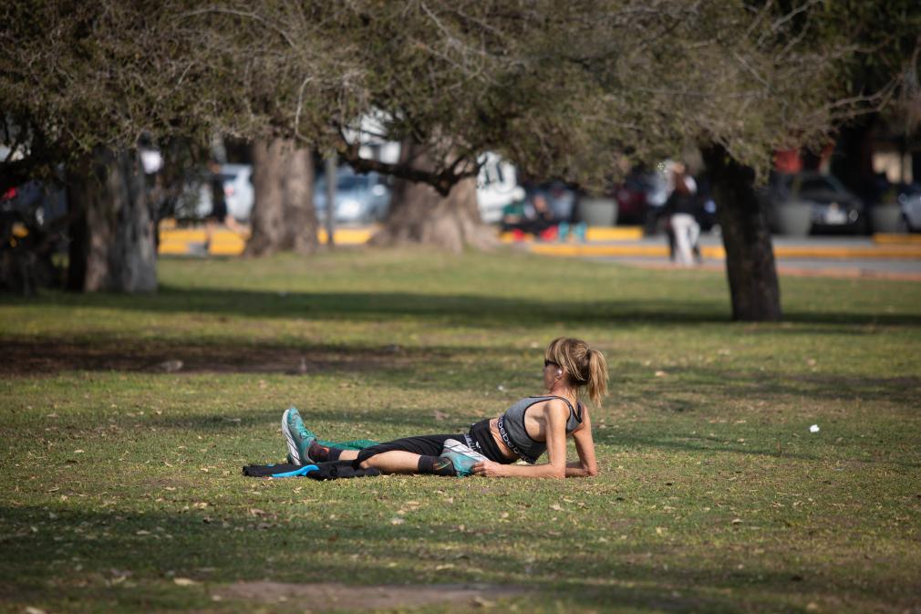 8月6日,一名女子在阿根廷首都布宜诺斯艾利斯的一处公园晒日光浴。新华社发(马丁·萨巴拉摄)