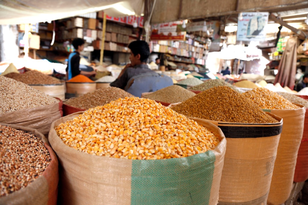 这是2022年6月29日在也门萨那拍摄的出售粮食的摊位。新华社发(穆罕默德·穆罕默德摄)