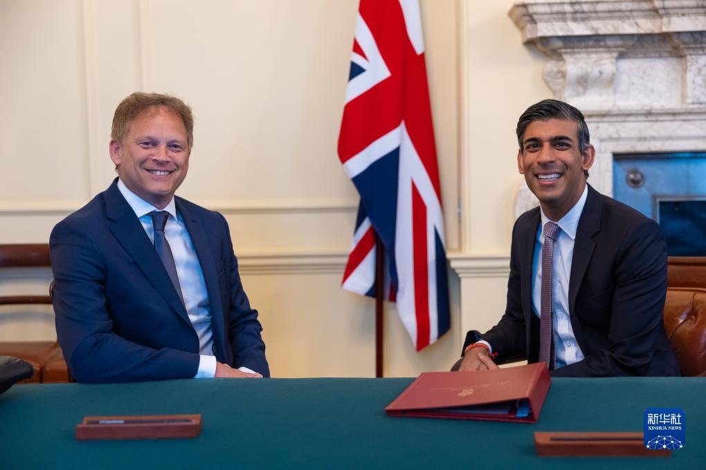 这是8月31日在英国伦敦首相府拍摄的英国首相苏纳克(右)和格兰特·沙普斯。新华社发(英国首相府供图)