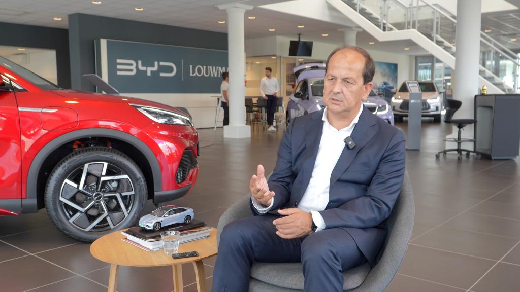 8月15日,在荷兰鹿特丹的比亚迪展厅,荷兰汽车经销商劳曼集团主席埃里克·劳曼接受记者采访。新华社记者刘宇轩摄