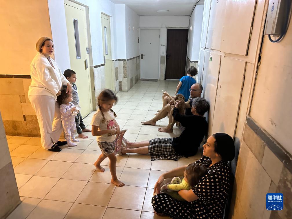 10月7日,防空警报响起后民众在耶路撒冷一处建筑内避难。新华社记者 王卓伦 摄