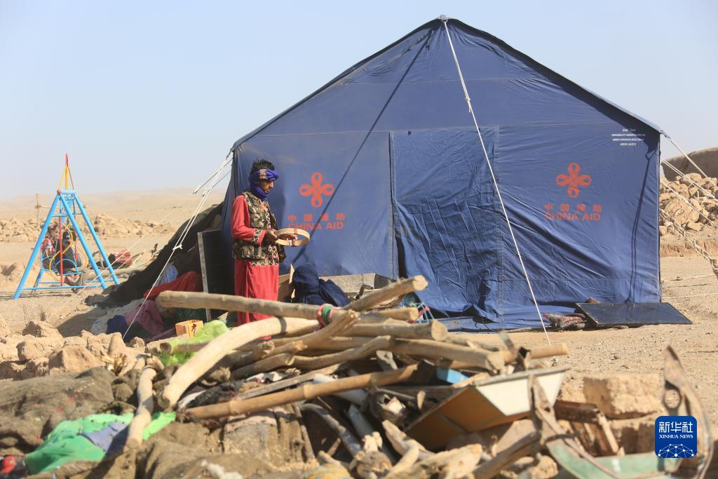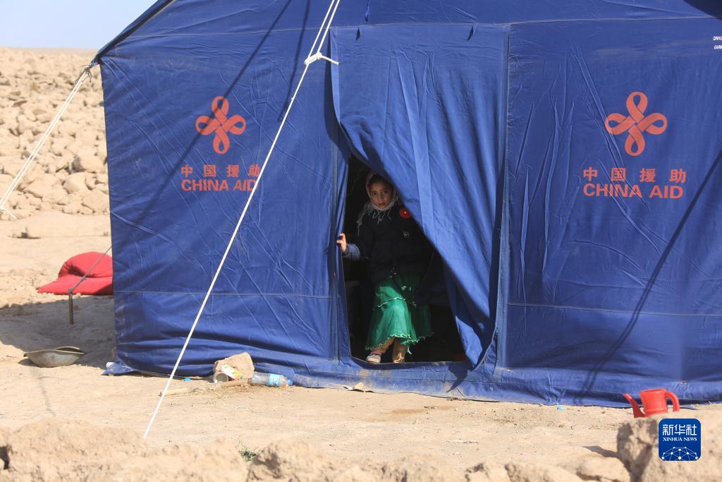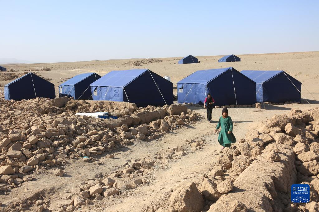 这是10月16日在阿富汗西北部赫拉特省津达詹地区拍摄的中国援助的帐篷。新华社发(塞夫拉赫曼·萨菲摄)