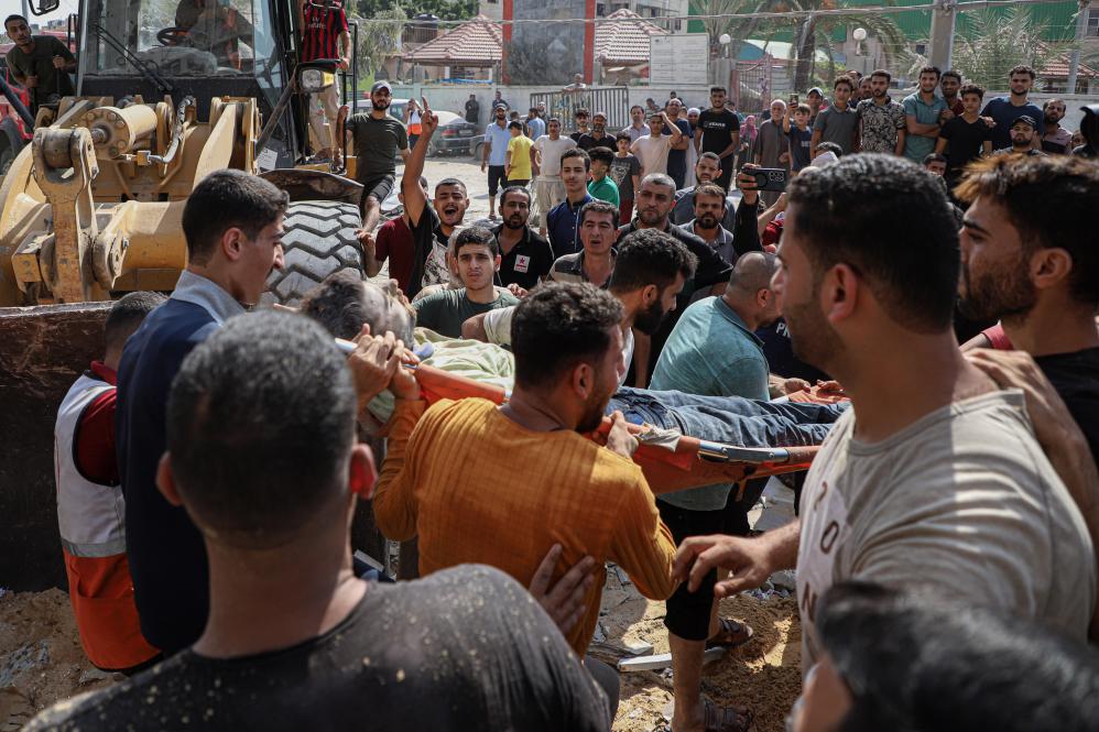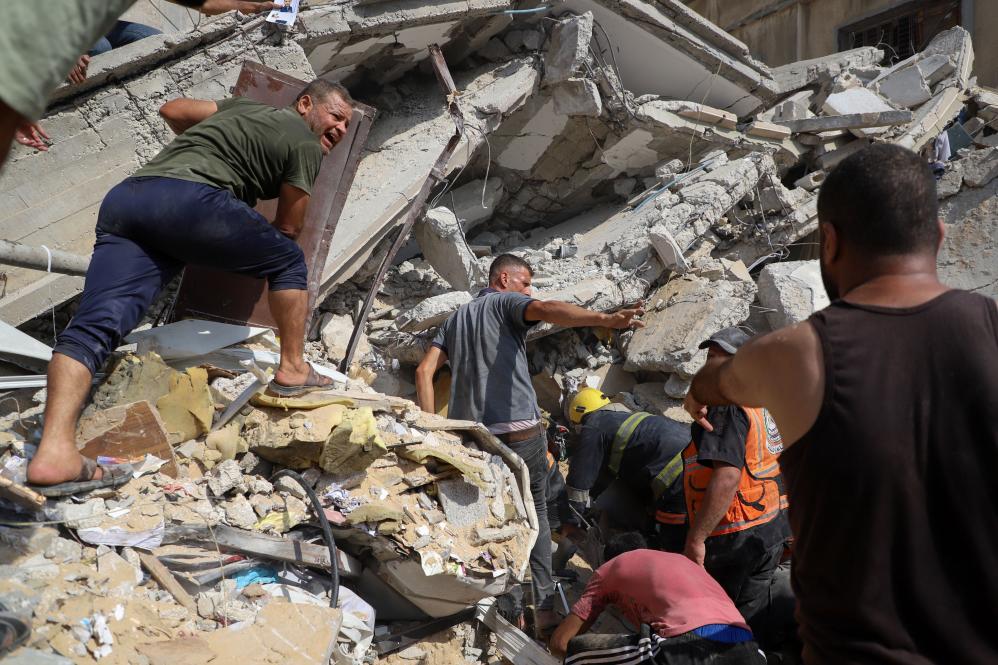10月24日,在加沙地带南部城市汗尤尼斯,人们在遭以色列袭击的建筑废墟进行搜救工作。新华社发(里泽克·阿卜杜勒贾瓦德摄)