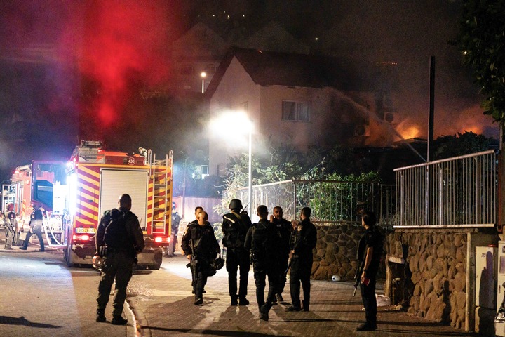 10月29日,在以色列北部城市谢莫纳,以军士兵和急救人员在一处被火箭弹击中的现场执勤。新华社发(阿亚尔·马尔戈林摄/基尼图片社)