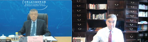 中国政府朝鲜半岛事务特别代表刘晓明同美国对朝政策特别代表金圣视频通话