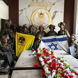 报道援引了以军发布的一张照片,照片显示多名以军士兵在宪兵总部举着以色列国旗。报道说军方没有标明照片的拍摄时间。