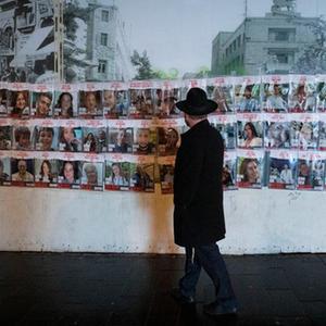 11月27日,在耶路撒冷,一名男子从被扣押人员海报前走过。新华社记者陈君清摄