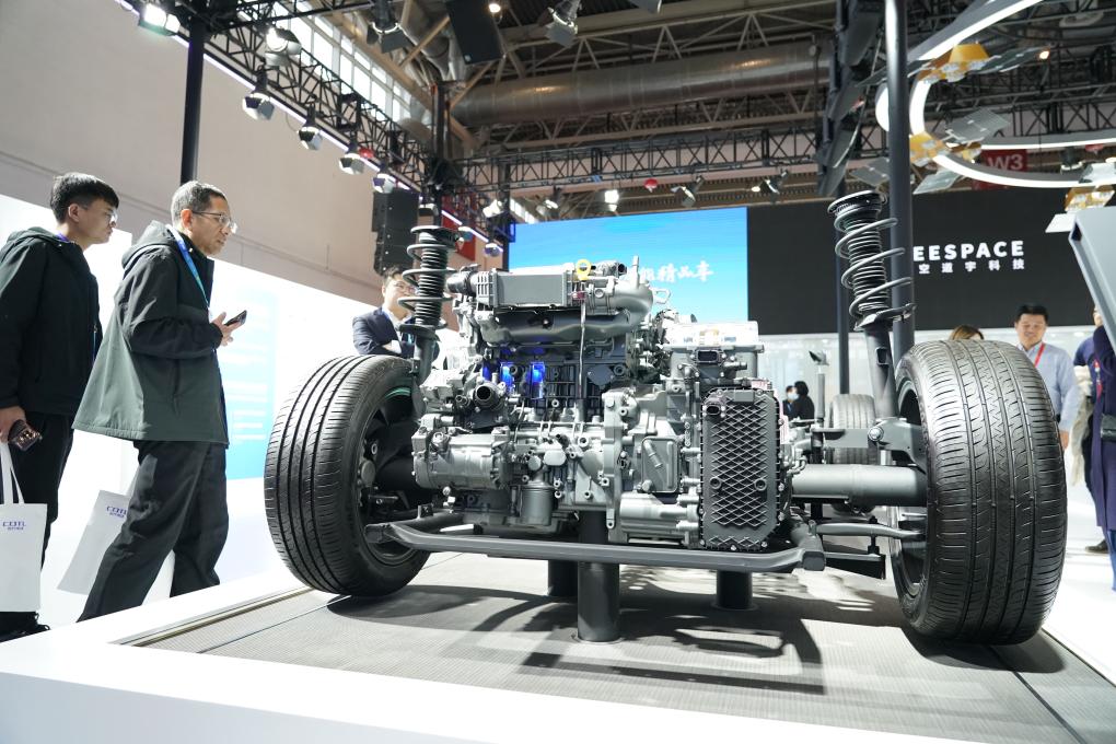 2023年11月28日首届中国国际供应链促进博览会在京开幕。这是11月28日在智能汽车链展区吉利汽车集团展位拍摄的“雷神”电混系统。(新华社记者任超摄)
