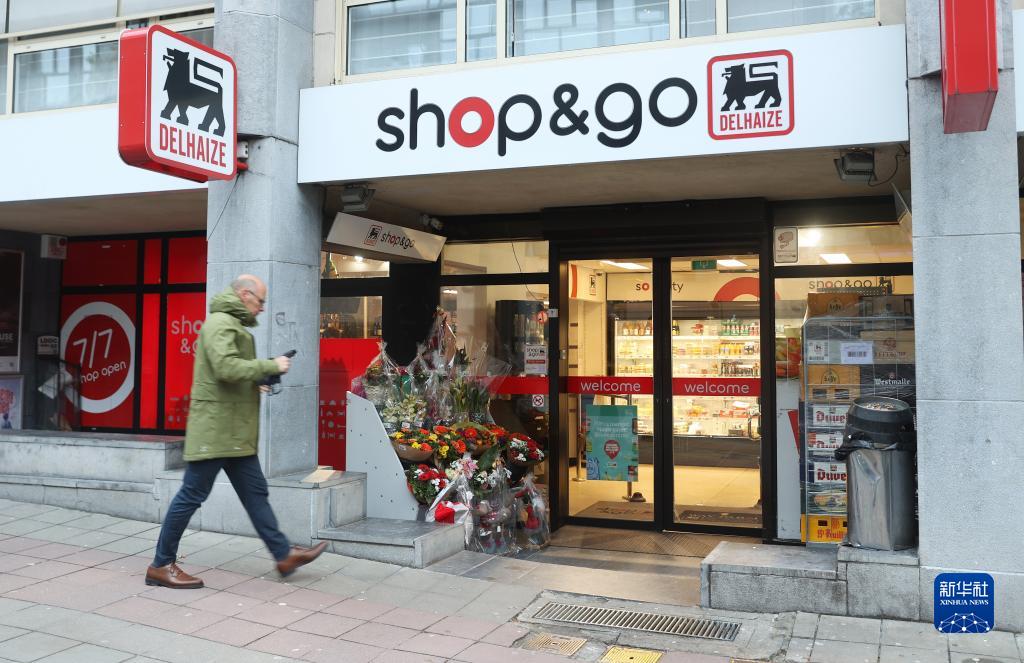 11月30日,在比利时布鲁塞尔,顾客来到一家超市购物。新华社记者 赵丁喆 摄