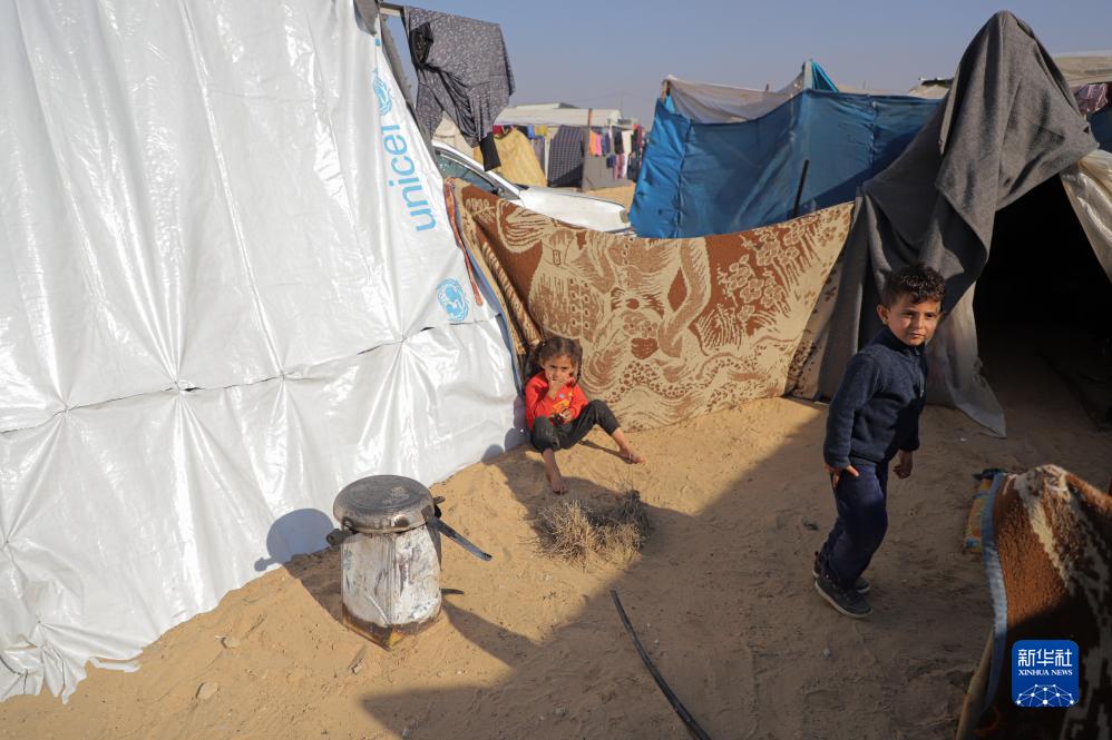 12月18日,在加沙地带南部城市拉法,孩子们在临时避难所休息。新华社发(里泽克·阿卜杜勒贾瓦德 摄)