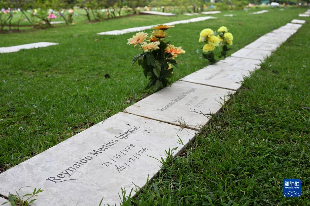 这是12月15日在巴拿马首都巴拿马城“和平花园”公墓拍摄的美军入侵遇难者墓碑。新华社记者 陈昊佺 摄