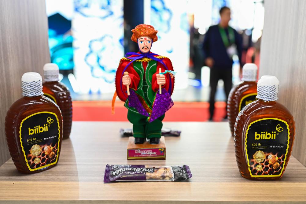 11月8日在第六届进博会上拍摄的尼加拉瓜蜂蜜产品。新华社记者 张可任 摄