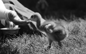 丹顶鹤的孵化需要31天,幼鹤出壳后首先放在保温箱里一至五天,之后将被转至育雏场进行人工饲养,然后再正常饲养。