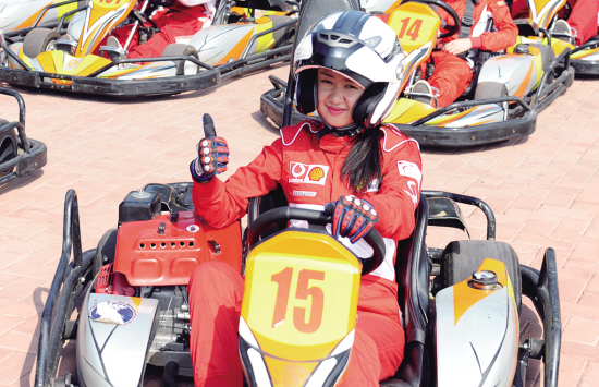 在全健基地的健身舞台上,飞驰而来的是卡丁车、越野皮卡、哈雷机车;多架动力滑翔伞在蓝天上飞翔,以不同造型进行着飞行表演。来自“猛禽皮卡帮”的越野车手们,从沙漠和雨林疾行归来,加速度的轰鸣声,将现场观众的热情带到顶峰。20位来自全健基地NFB卡丁车俱乐部的会员,驾驶着卡丁车驶入场地,漂亮的女队长苏靓,一身红色车手装,帅酷靓丽。在“小众”运动逐渐向“大众”普及的今天,这些刺激与速度的时尚运动,深受年轻人喜爱。