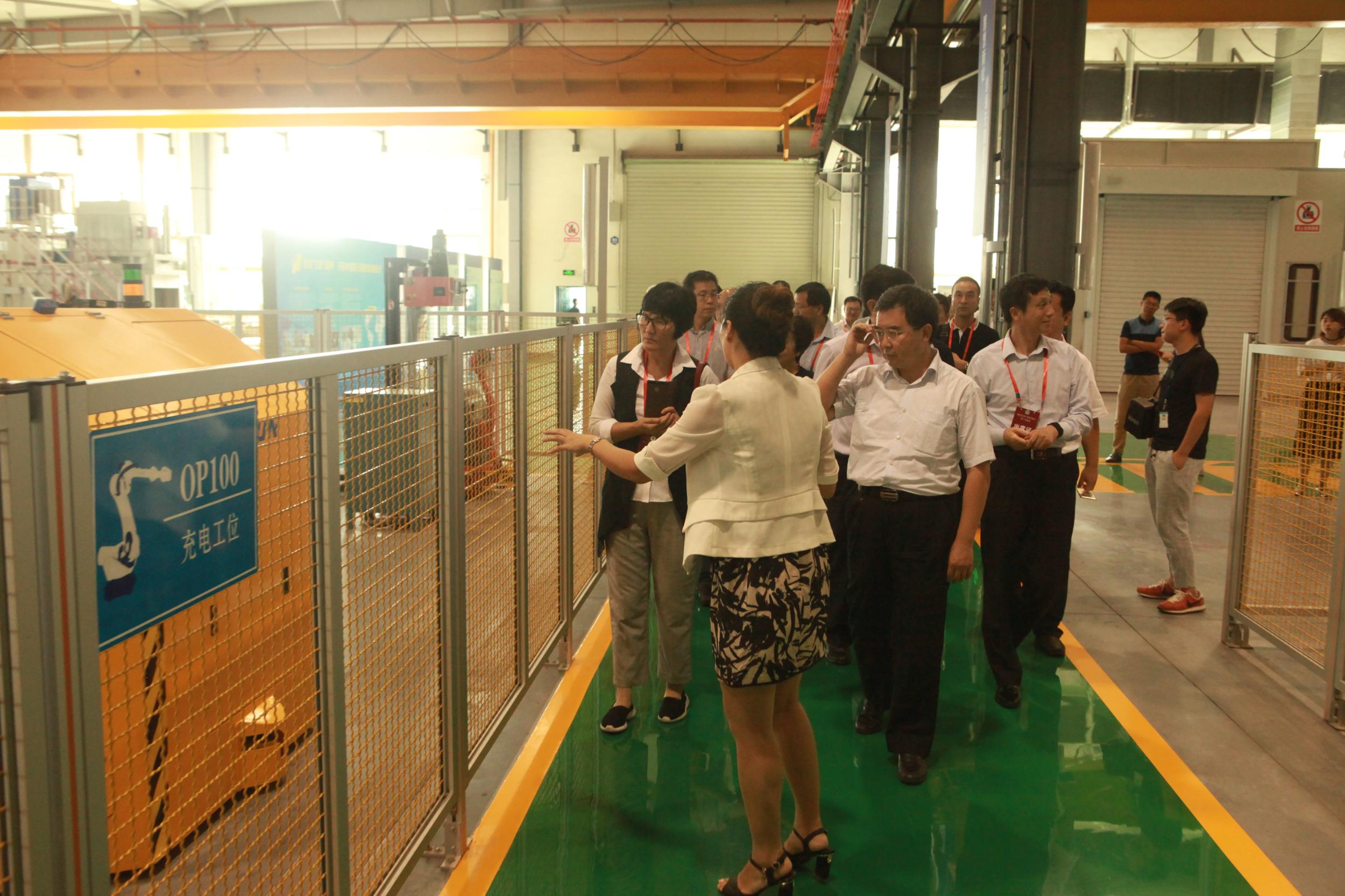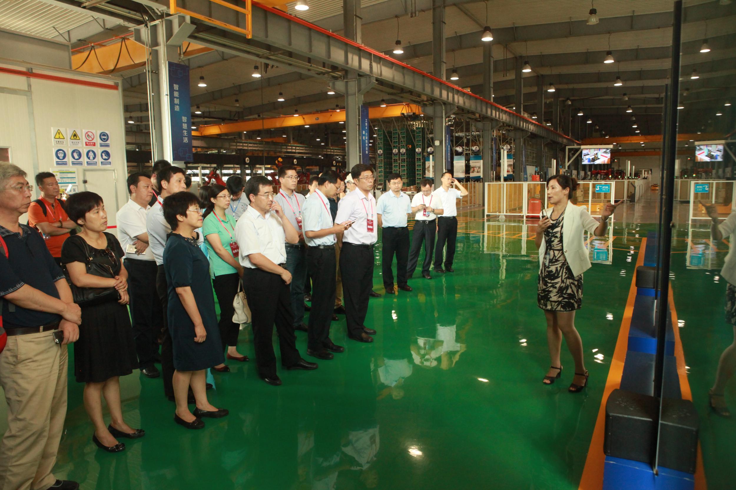 考察团在新松浑南智慧产业园,参观C4机器人数字化生产车间。