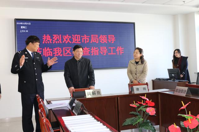在听取了五三司法所人民调解工作在基层起到的重要作用后,开德局长给予了高度肯定,指出要坚持和发扬“枫桥经验”。并提出在全市打造以“全国优秀人民调解员”五三司法所所长王晖命名的“晖哥人民调解室”,挖掘先进典型的示范和引领作用,将人民品牌调解工作室模式在全市推广。充分利用优秀人民调解员扎实的调解功底、较高的社会威望、亲和的个人魅力和群众信赖等优势,提升了人民调解的社会公信力和影响力,更好地维护了社会和谐稳定。