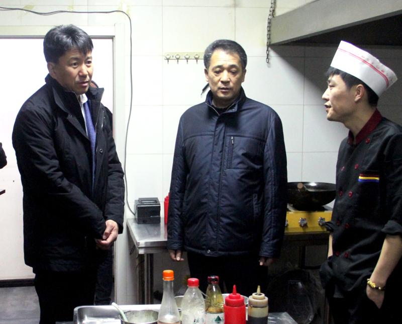 在绿城喜来登酒店周边餐饮单位检查时,李军区长对各餐饮单位后厨卫生、健康证、证照上墙、餐具消毒和原料仓储等情况进行了检查。李军区长要求,要切实加强餐饮单位的食品安全管理,确保食品安全零隐患,同时加强该地区周边环境的综合整治工作,尤其对车辆无序停放等现象加大整治力度。