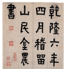 金农(1687—1763年),工诗文,精篆刻。其书法出入楷隶之间,所创“漆书”尤为奇古,富于金石意味,为时人所推重。
