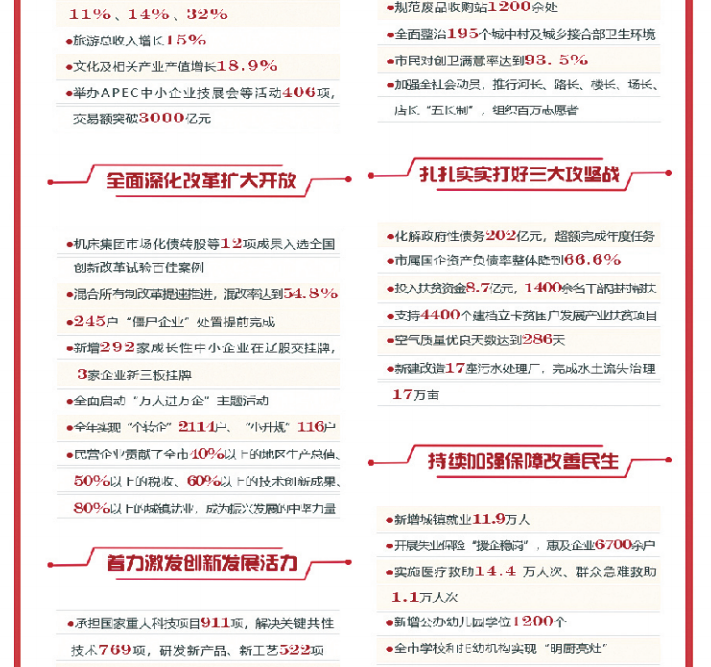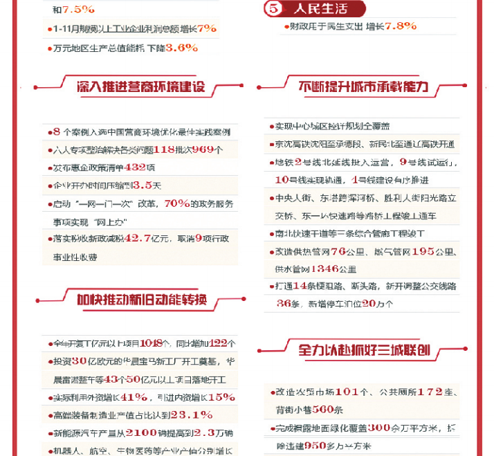 秉承高质量发展,以稳中求进为总基调,以供给侧结构性改革为主线,推进“一带五基地”建设,实施辽宁“五大区域发展战略”。沈阳市经济运行稳中有进,质量效益稳步提高,发展活力持续增强,城乡环境明显改观,人民生活不断改善。