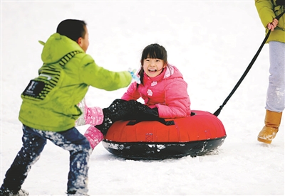 滑雪圈是小朋友们的最爱,坐在雪圈里从雪道上滑下,听着风声,感受着自上而下的快感;“200米疾速冰滑梯”以及今年新增的“雪山蹦极”,是很多年轻人钟爱的刺激项目,娱乐的是冰雪,挑战的是胆量,亲身参与者的尖叫声,也引得笑声四起;雪地香蕉船、雪地越野摩托、冰上碰碰车……这些都是全家老小的最佳选择。白芳芳与老公在也冰雪乐园中找寻到了曾经的童年记忆,他们在冰面上抽冰尜,每人拖着一个雪橇,让孩子们坐在上面,向前冲,这些冰雪游戏也是“80后”的他们儿时冬季最爱。白芳芳说:“即便我们身在国外,也时刻关心着2022年北京冬奥会从申办到申办成功,再到筹备进展的讯息,倍感骄傲。我们的家乡在东北,大家应当走出来,去滑雪、滑冰,节假日全家老小来玩冰嬉雪,享受得天独厚的气候条件为我们打造的‘冰雪世界’,沈阳的冬季本就应该是这番热闹的景象!”