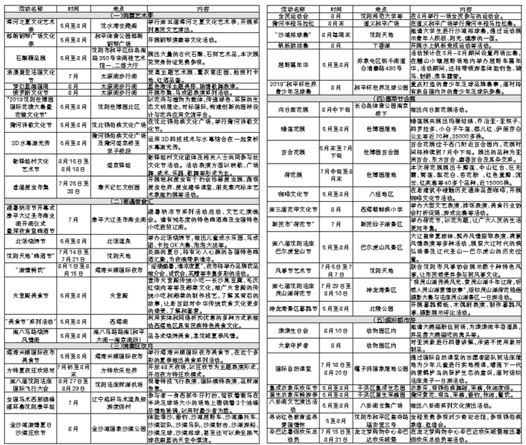 “清风满韵夏凉沈阳”2019中国沈阳国际旅游节夏季游活动(部分)
