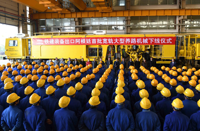 在中国铁建高新装备股份有限公司举行的宽轨铁路大型养路机械设备出口阿根廷下线仪式(2017年12月28日摄) 。新华社记者杨宗友摄