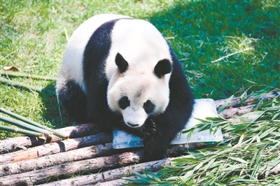 这么热的天,在空调房里抱着冰块,让不少游客十分羡慕。饲养员告诉记者,最近天气热,清晨室外气温没那么高时,他们会让大熊猫到室外玩;白天太热,四只大熊猫基本都待在空调房中。而大熊猫最爱的竹子和竹笋,都是空运而来,十分新鲜。目前大熊猫生活状态一切正常,没有受到高温影响。