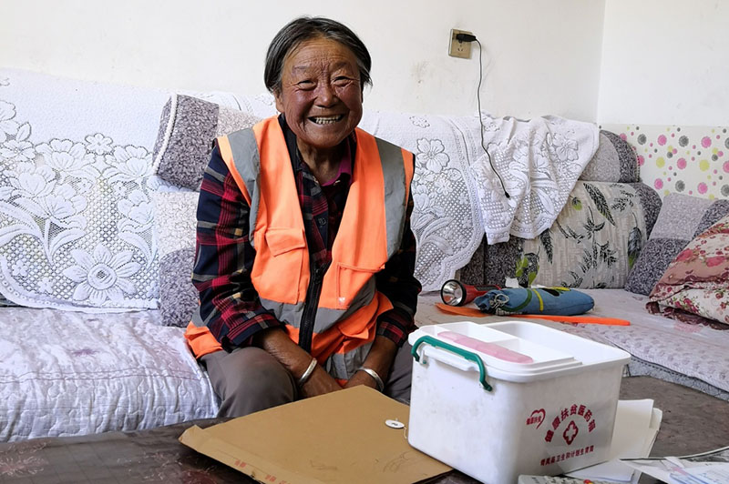 山西省岢岚县赵家洼村村民王三女和她的“健康扶贫医药箱”(7月29日摄)。新华社记者梁晓飞摄