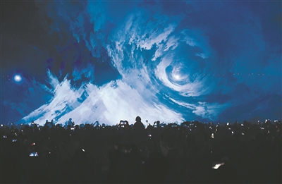 第三个篇章呈现出的是“浩瀚宇宙”。浩瀚宇宙,极光之境,游客们屏气凝神仰望沈阳的星空,此时,如魔法般的光影肆意飞舞在夜空之中,神秘的色彩,铺满天空。这一道道来自神秘空间的电子束,时而转瞬即逝,犹如节日的焰火在空中闪现,瞬间消失得无影无踪;时而穿梭于人群中,犹如一条条色彩绚丽的彩带,萦绕身边;时而又如同在苍穹之中辉映成的画卷,将我们笼罩在五光十色的巨大银幕之内。