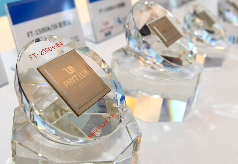 这是在天津滨海——中关村科技园协同创新展示中心展示的飞腾芯片(2019年1月17日摄)。新华社记者 岳月伟 摄
