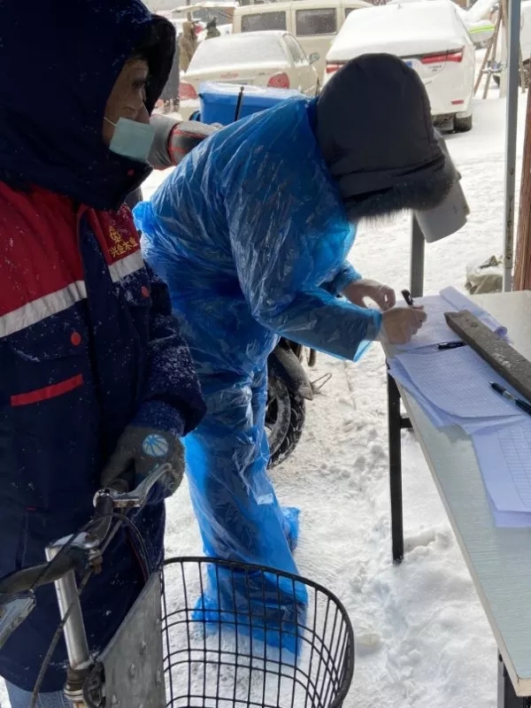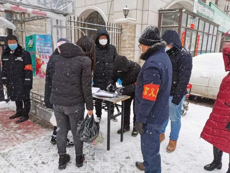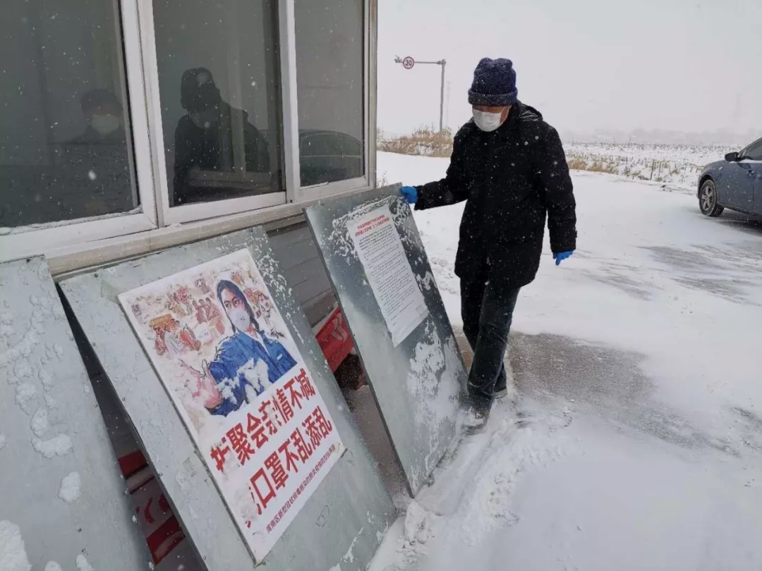 他们当好“保卫员”,不畏风雪,在小区门前设置卡点,严防外来车辆和人员进入,实现有效管控。