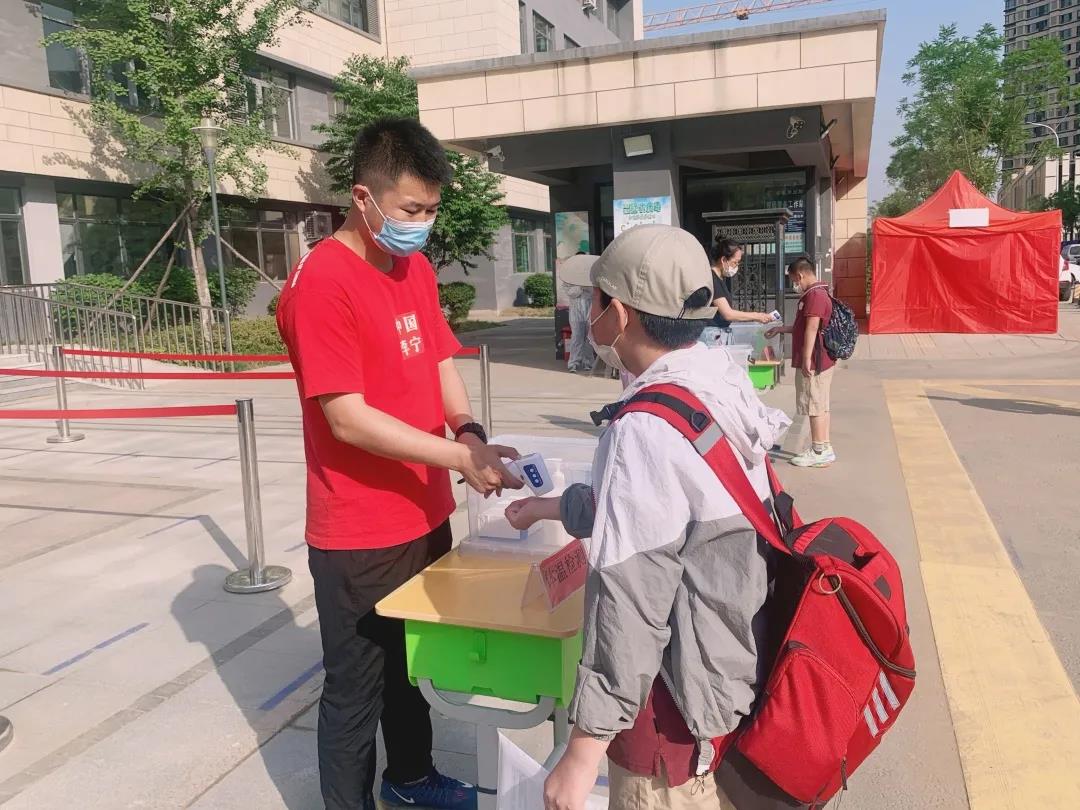 来到了学校门口的同学们,在老师们的组织下,保持1米的安全间隔距离,有序地从四条人工检测通道以及自动测温系统通道进入,循着地面的安全线有序站位,不扎堆、不拥挤,经过体温测量正常后,快速进入学校,整个过程有条不紊、秩序井然。