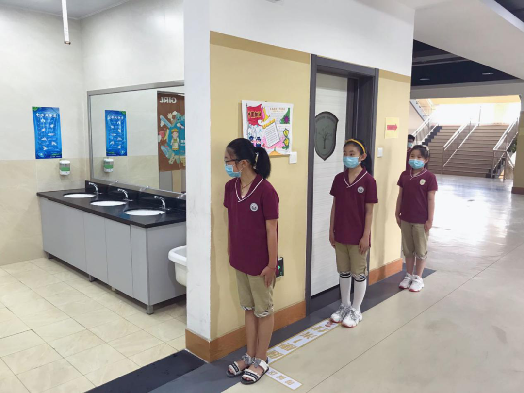 班主任老师按照学校工作部署,针对校园防控具体要求,现场组织学生实地学习在校一日常规,从入校、上课、饮水区接水、课间活动、体育课、入厕、七步洗手法洗手、午间用餐、错峰放学等方面都做了细致规范的要求,有效的保障了学生的安全。