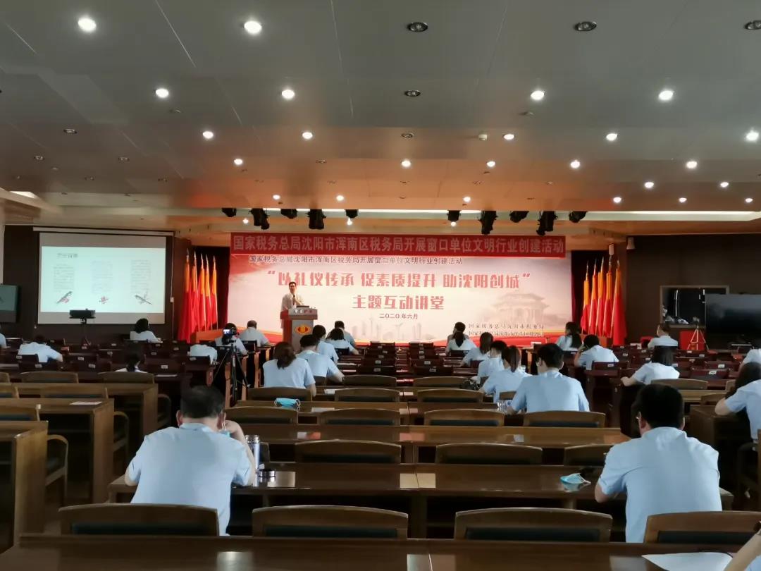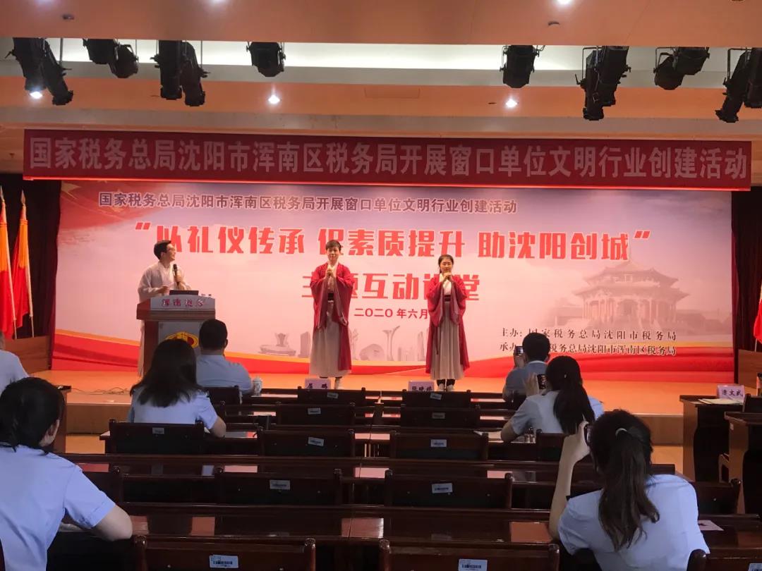 这是由国家税务总局沈阳市税务局主办、浑南区税务局承办的“以礼仪传承 促素质提升 助沈阳创城”主题互动讲堂现场,三名税务干部变身“文化传承员”,从礼的产生、礼在不同时期的体现和发展、当代社会礼仪传承等方面进行了深刻阐释,同时紧密结合新时代办公礼仪要求倡导文明沟通、文明服务。主题互动讲堂是区税务局2020年助力沈阳创城的系列活动之一。为深入贯彻落实习近平总书记“四个着力”、“三个推进”重要指示精神的战略部署,进一步提升税务干部自身文化素质、提升纳税服务质量、促进社会文明进步、助力全国文明城市创建工作,区税务局统筹编制创城活动计划,制定详细的活动策划案,广大干部职工广泛参与,加强宣传,通过每月一个创城主题活动,鼓励进一步弘扬传统文化,坚定文化自信,在工作和生活中继承发扬礼的精神,践行礼的规范,做礼仪的践行者和传播者,使文明礼仪的传承与发展成为涵养社会主义核心价值观的重要源泉。