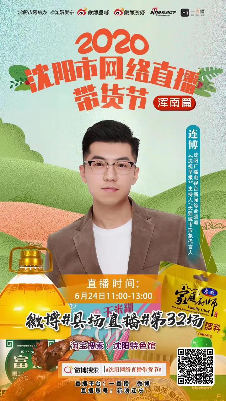 沈阳广播电视台主持人连博将客串主播助手,与各商家负责人一起进行2小时的网络直播。