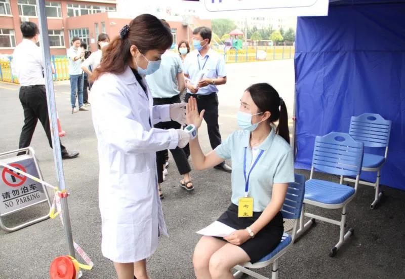 记者在沈阳市浑南区第四中学演练现场看到,本次演练包括校门外验证、测温、特殊考生进入考点考场、特殊天气考生入场、考试期间考生出现体温异常、考试结束后消杀工作等共7个场景。演练开始后,全体工作人员按照岗位分工及职责各司其职,各负其责,听从指挥,按照既定方案,全面进行模拟演练。