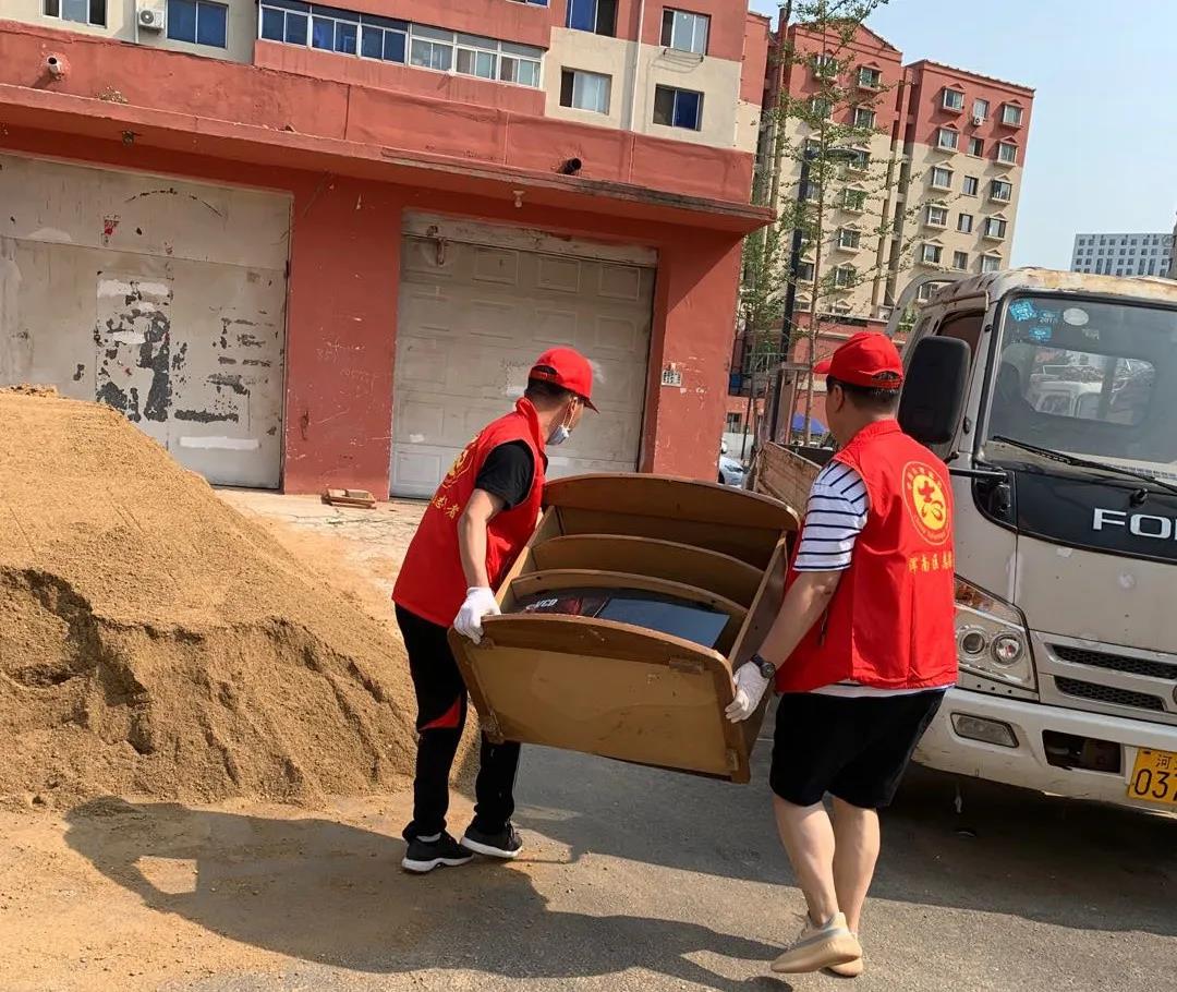 ▲志愿者帮助居民清除废弃家具。(摄影:张宁)