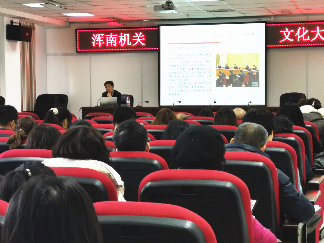 为深入学习贯彻党的十九届五中全会精神,努力掌握全会精神的丰富内涵和核心要义,推动机关党员干部切实把思想和行动统一到全会精神上来,把智慧和力量凝聚到落实全会确定的各项任务上来,近日,区直机关工委举办了2020年第三期“浑南机关文化大讲堂”,邀请辽宁大学马克思主义学院祁冰教授,做《历史交汇点上的宏伟蓝图——十九届五中全会精神解读》专题报告,进一步增强机关党员干部政治自觉、思想自觉和行动自觉,为“十三五”圆满收官、“十四五”良好开局奠定基础。