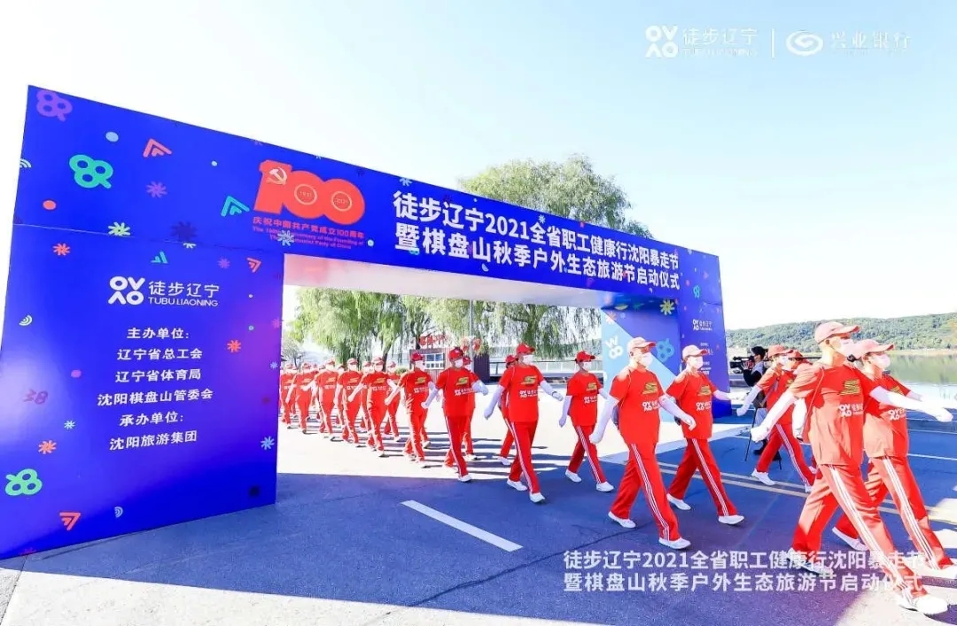 10月12日下午,徒步辽宁 2021全省职工健康行沈阳暴走节暨棋盘山秋季户外生态旅游节启动仪式在棋盘山风景区秀湖畔热力启动。本次活动以“兴业兴辽,健康小康”为主题,由辽宁省总工会、辽宁省体育局、沈阳棋盘山管委会共同主办,沈阳旅游集团承办,兴业银行沈阳分行冠名支持。