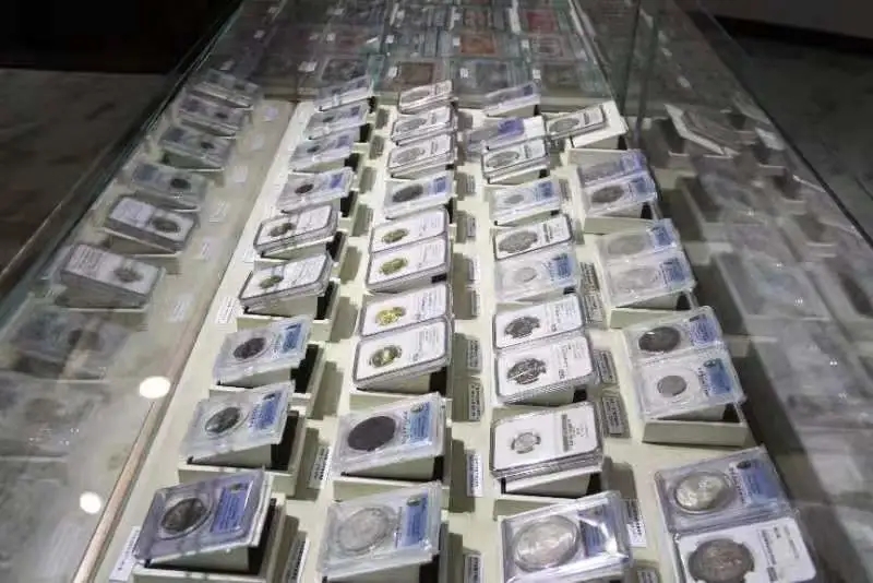 钱币展品更是涵盖了近现当代硬币纸币精品,其中不乏顶级大珍,全部权威评级入盒展出。其中的吉林省造光绪通宝辛丑壹百箇,是多次权威著录的传世孤品。1951年壹万元牧马票样正反面一组,也是人民币收藏的币王品种。钱币展品还有广大群众喜闻乐见的龙洋袁大头这类常见精品,寓教于乐将钱币常识普惠市民。