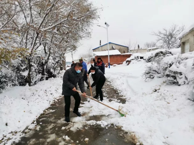 魏家沟村第一书记李焕发率志愿者来到五保户家中帮助除雪,解决他们出行的后顾之忧,使他们感受到党和政府的温暖。村书记安志国冲锋在前,自行驾驶铲车,对村内主要干道进行除雪作业。村两委班子还号召党员干部、志愿者组成了“魏家沟扫雪突击队”,以雪为令,全力清除道路积雪,用实际行动为村民开辟出一条条通畅大道,保障村民顺畅出行。