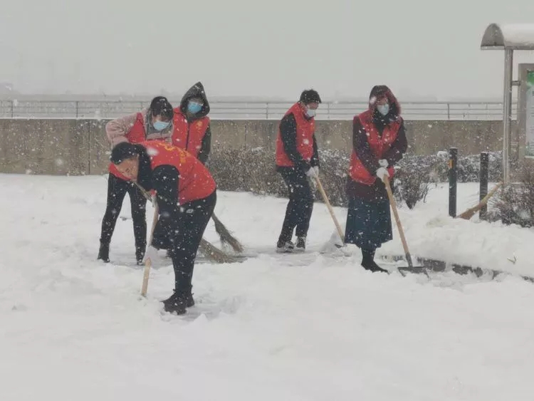 区委宣传部、区新时代文明实践中心、区志愿服务联合会第一时间发出倡议书,动员全区各机关企事业单位、社会组织、各文明实践所站、各志愿团体投身到除雪一线,开展全民大扫雪活动。广大志愿者积极发挥带头示范作用,到冰雪最严重、群众最需要的地方去,将党旗飘扬在扫雪除冰的最前线。在党员志愿者的带领下,全区各单位也纷纷组织员工,拿起除雪工具,积极参与到全民除雪工作当中。在区内各个街道文明实践所站,2000余名志愿者们深入背街小巷和居民小区开展扫雪活动,传递文明,弘扬志愿服务精神。