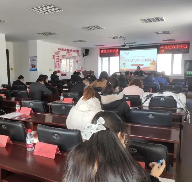 为深入学习贯彻党的十九届六中全会精神,引导全街广大党员干部群众切实把思想和行动统一到全会精神上来,浑河站东街道日前召开学习贯彻党的十九届六中全会精神宣讲会,街道党工委副书记徐柏钢作专题报告,街道党员干部,各社区、村书记参加会议。